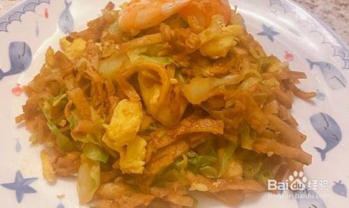 圆白菜炒制过程中锅内会有菜汁,放入饼丝,盖上锅盖焖一会儿,期间需要打开锅盖用锅铲铲下下面的圆白菜,以免糊锅,汁水收的差不多后开盖,开始翻炒饼丝,翻炒均匀,加入炒制好的鸡蛋继续翻炒几下,出锅前加入盐,鸡粉和白胡椒即可