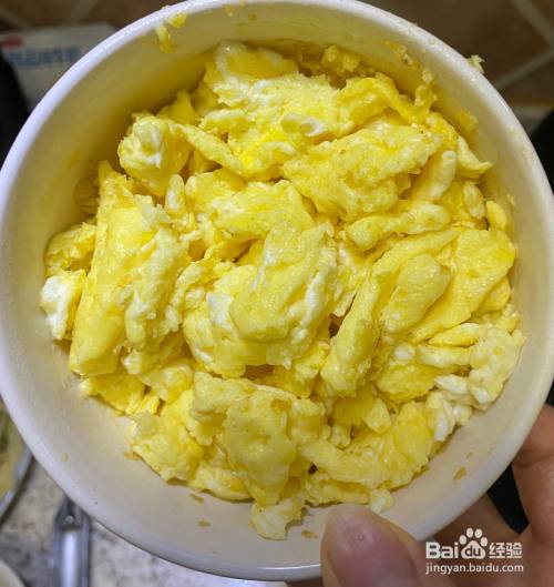 打散的鸡蛋放入少许盐和油,加入油的鸡蛋炒制出来更嫩滑,因为鸡蛋是最后放入的,所以加些盐,以免没有味道