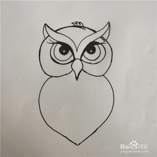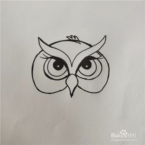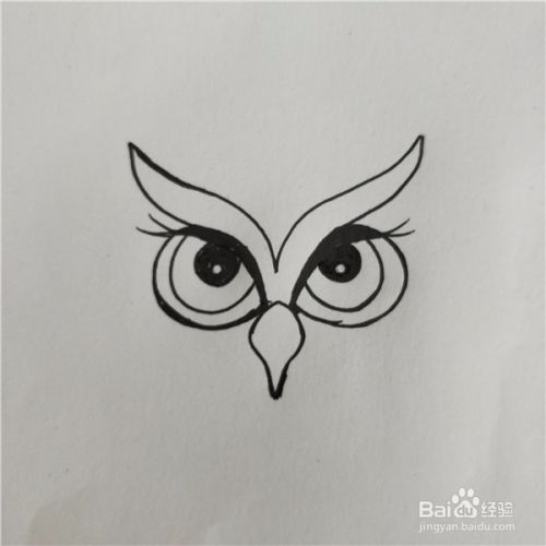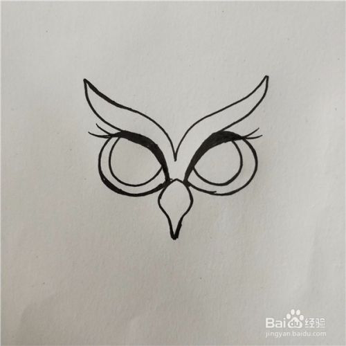 在两条线中间画上猫头鹰的鼻子