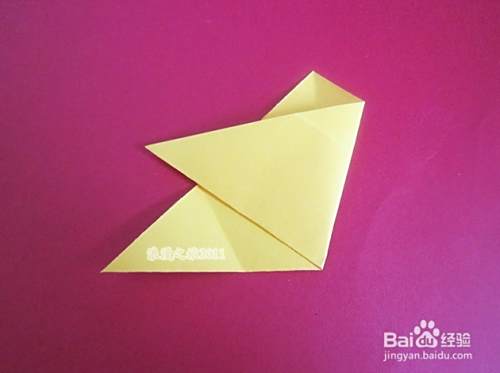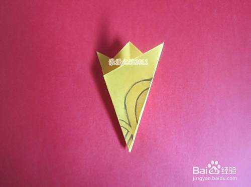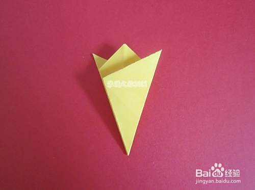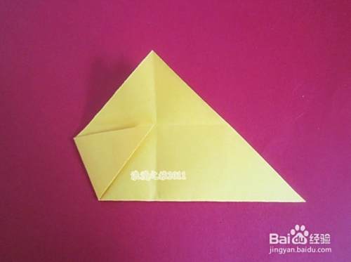 再打开,左角向中心对折,如图所示。