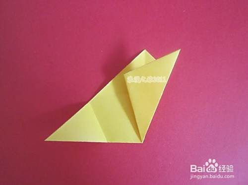 再打开,右边的角从中心向折痕对折,如图所示。