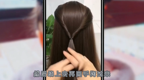 5还可以左右两边各取一缕头发,用小皮筋固定,绕上去回手掏过来。