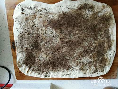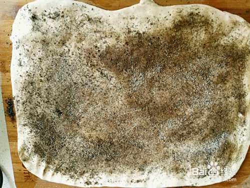 放完盐跟花椒面后均匀的把麻酱抹在上面