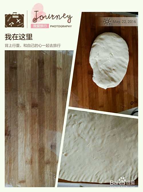 案板上均匀抹上油,把面团放在上面,用擀面杖擀成案板大小的面片,擀好后一定要用收把最上面按薄,防止卷面时候薄厚不均匀