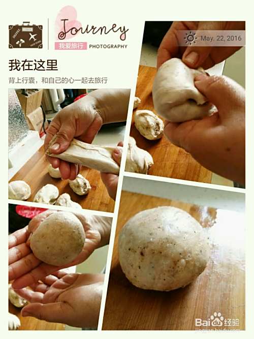 拿起面团拉伸对着再对折后揉成表面光滑的面团儿