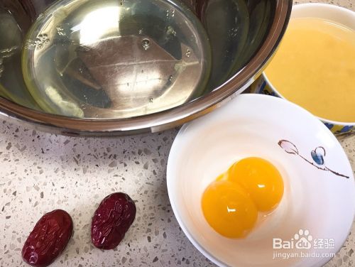 蛋白蛋黄分离,小米提前泡2小时以上,红枣去核。