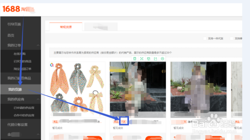 在1688淘管家点击我的货源,选择有代发标记及自己需要上架销售的产品。