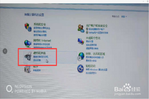 步骤一:点击电脑桌面 “开始”键,然后点击“硬件和声音”