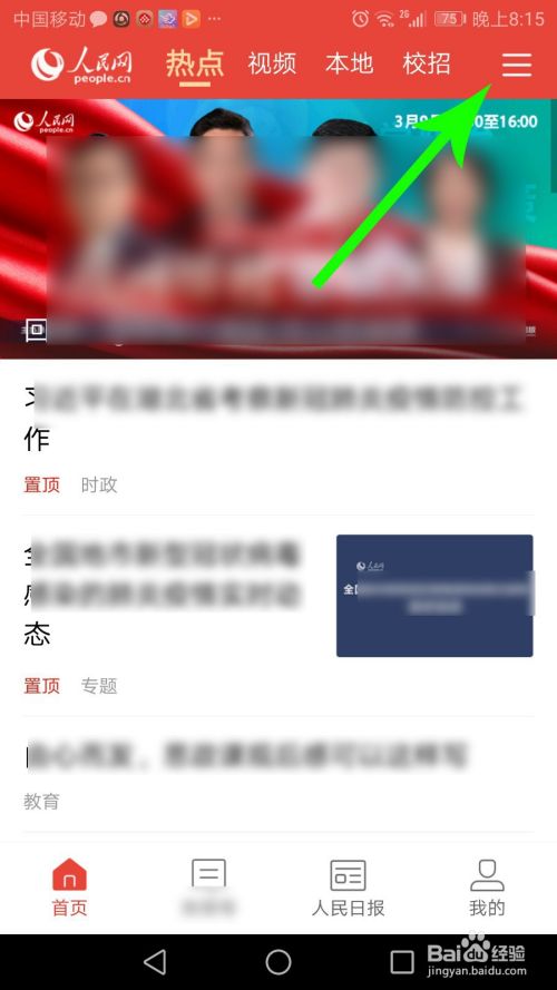 打开人民智云首页,然后点击右上角的“三”。