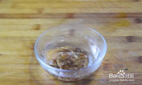 准备一点红枣,将葡萄干与红枣切碎,放入碗中备用