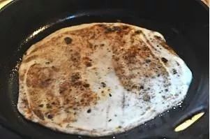 煎锅倒入少许油,放入糖饼胚,不用盖盖子,小火煎熟即可