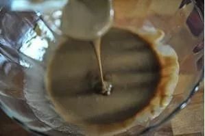 芝麻酱加入一汤勺左右的香油,顺着一个方向搅拌
