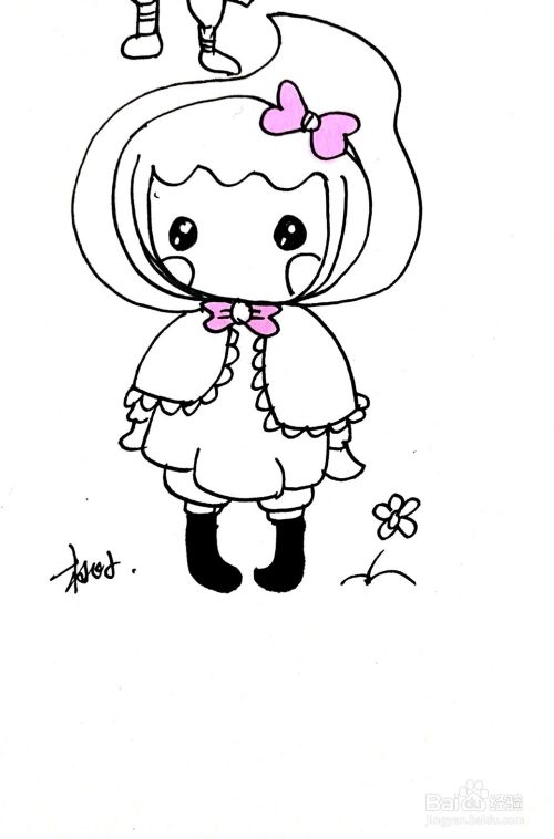 其次,画出头发和蝴蝶结。