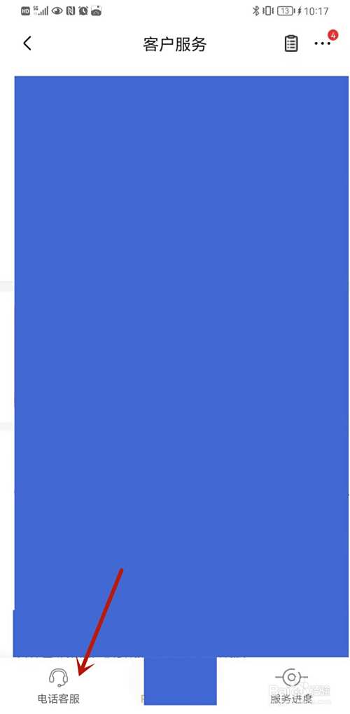 三、进入新页面后,在左下方找到如图红箭头所示的“电话客服”,并点击进入新页面。