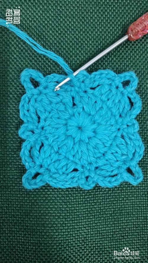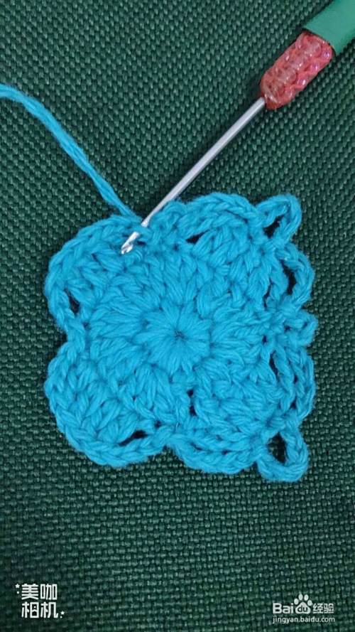 进行完成第5、6步骤,完成其他花瓣的花样,这样正方形花样就编织完成了。