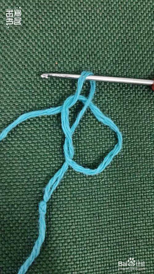先用钩针拉花6针,紧锁在第一针拉花处,钩出一个小圆圈。在这个小圆圈里面锁针16针。