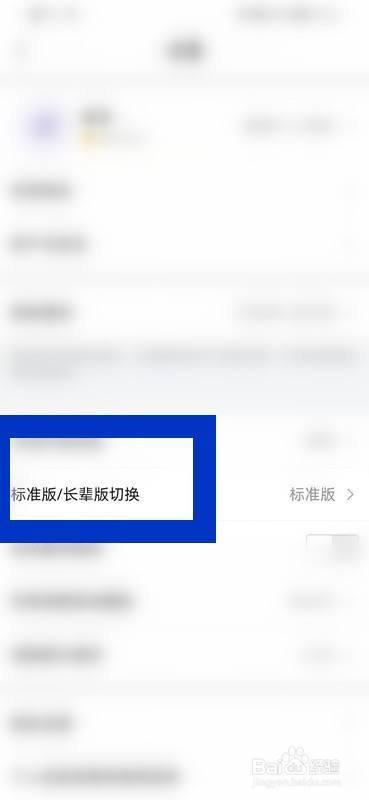 第四步:在打开的页面中找到【标准版/长辈版切换】几个字,并点击这几个字。
