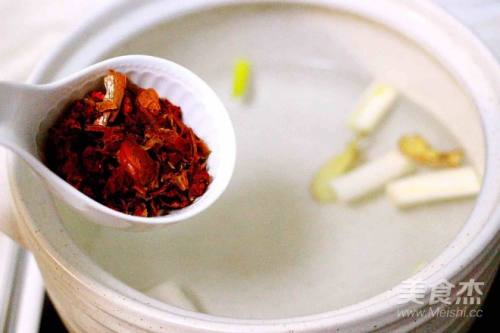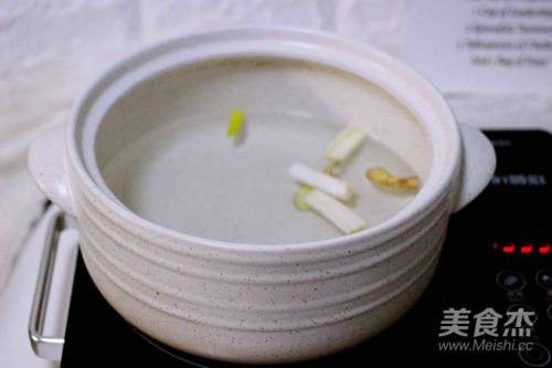 5砂锅中倒入适量清水、放入葱段和姜片
