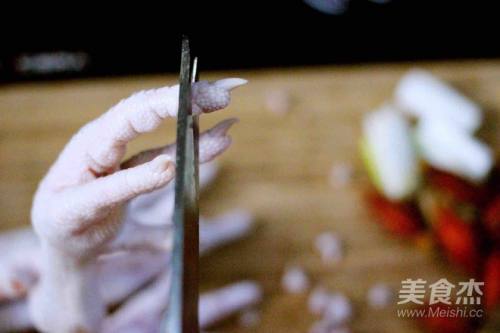 3浸泡洗净后的鸡爪用剪刀将其鸡爪指甲剪掉