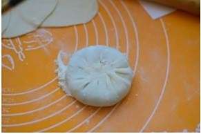接下来就是要开始制作馅饼皮了,在面粉里面倒入水,揉成下面团状。
