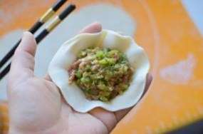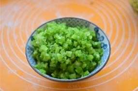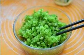 然后将切好的芹菜拌入肉馅中,搅拌均匀。