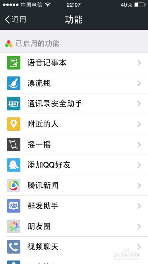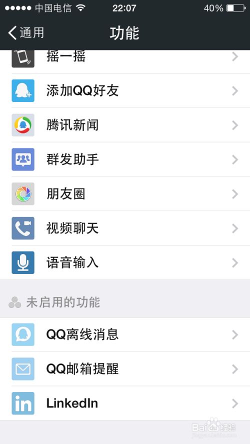 点击功能页面的通用,进入通用页面,就可以看到已启用和未启用的功能,QQ邮箱提醒一般在未启用里面,点击开启就可以接收邮件了。