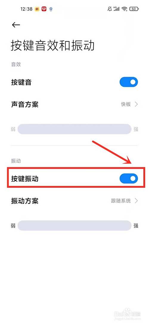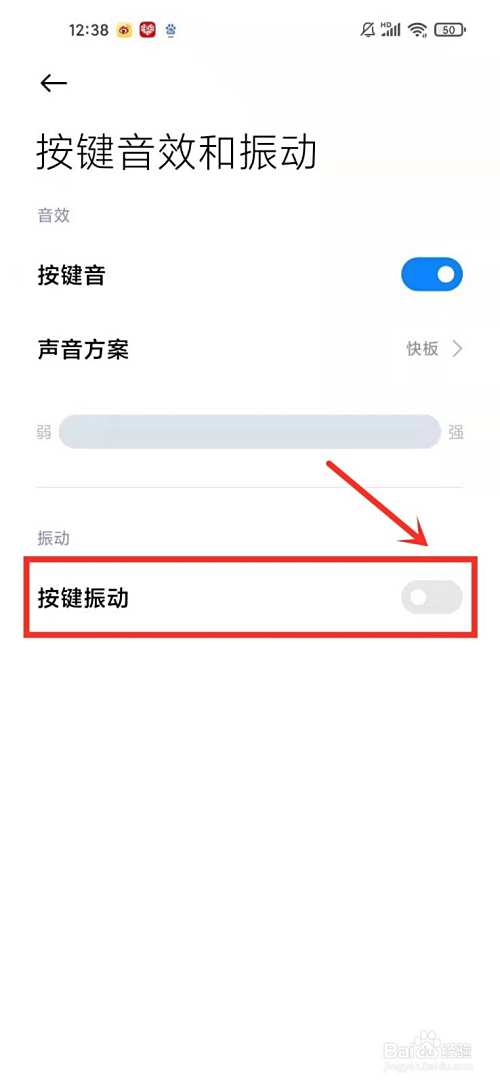 关闭“按键振动”右侧的开关即可。