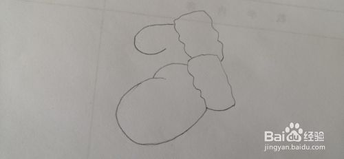 然后画出一只手套的大体的弧线,画出大拇指的样子。