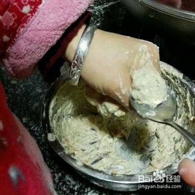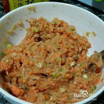 将葱、肉、胡萝卜丝等所有的材料均匀的搅拌。