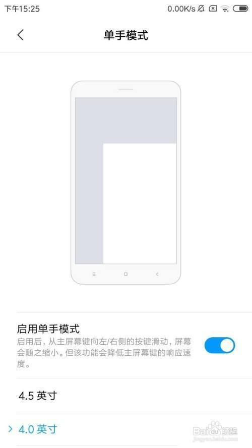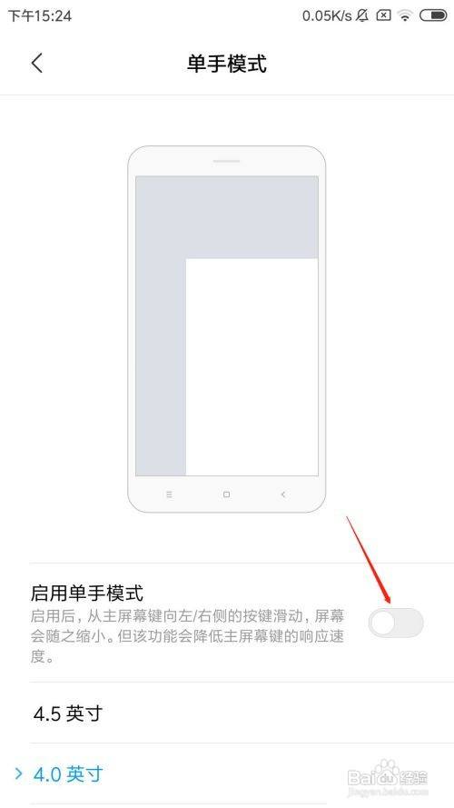 5、打开之后,从主屏幕键向左/右侧的按键滑动,屏幕会随之缩小。