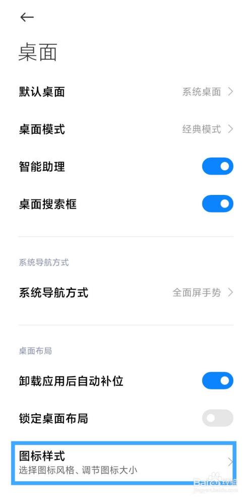 打开桌面设置界面,点击“图标样式”,如图所示。