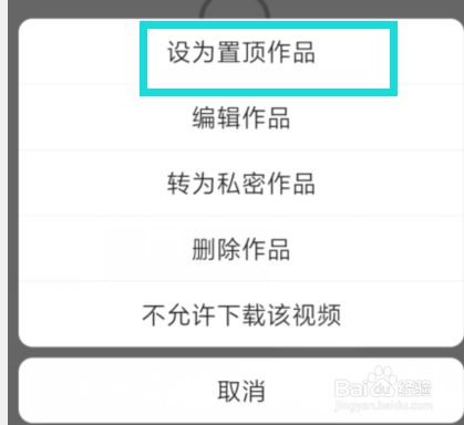 最后我们在里面点击上方三个点的菜单就会弹出窗口我们选择“设为置顶作品”即可