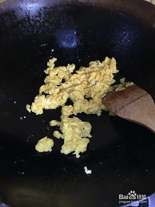 起锅油,油热后打入鸡蛋,炒好后盛出。