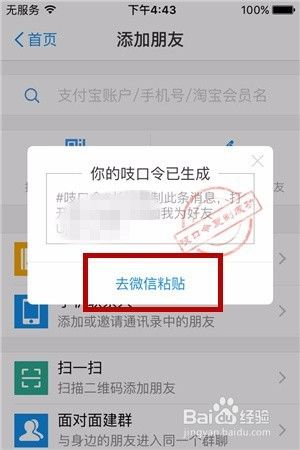 这样等这位好友复制了这段口令后,打开支付宝就可以将我们添加为好友了。