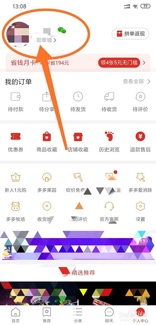 第六、进入到个人中心后,可以看到微信登录拼多多成功。