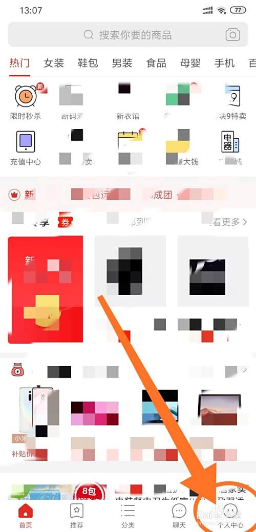 第五、登录到拼多多的首页,点击右下角的 “个人中心”;