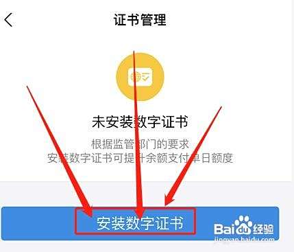 选择“安装数字证书”功能,进入安装可提升支付宝额度。