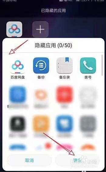 已隐藏的应用左上角会有“√”,点击将其取消勾选。