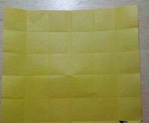 横向三等分后,再将每个折痕的格子对折,使纸横竖方向都六等分。