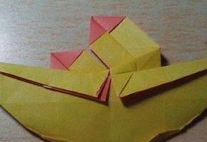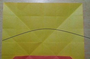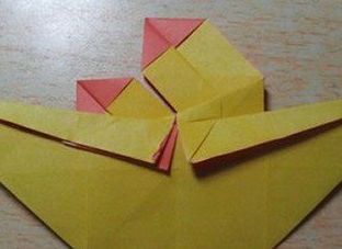 折好后如下图(第一张是正面照,第二张是背面照),然后将正面黄色部分的纸往下压至水平。