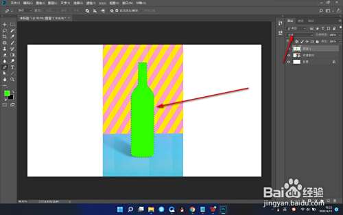 5.选择色相,这个时候酒瓶的整体色调就偏绿了。