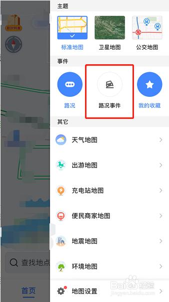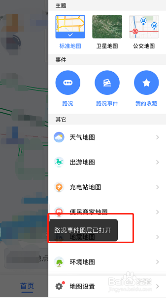 打开后选择路况事件,点开后会提示路况事件图层已打开。