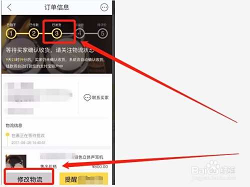 确认后即可发现进度变为已发货,中途可以修改物流,等待买家收货后即可完成交易