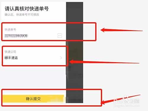 核对快递单号和快递公司,确认无误后,点击确认提交