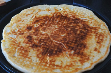打开上盖,发面饼就烙好了,看着有点火大了,这是早期的电饼铛,没有定时,所以需要注意观察,看到周边没有热气出来就要及时打开上盖