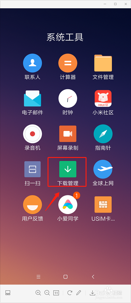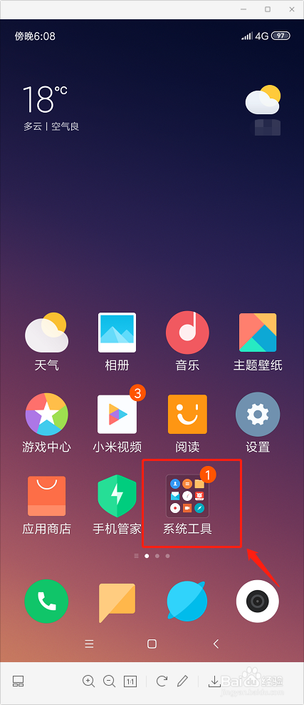 小米手机如何删除系统更新安装包?首先,点击进入手机主页中的系统工具。