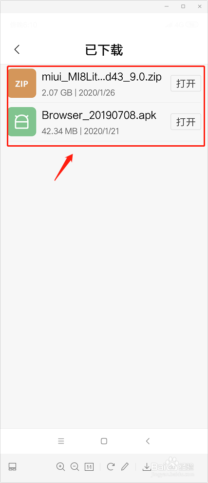 第四步,长按手机屏幕,选择小米手机系统安装包文件。