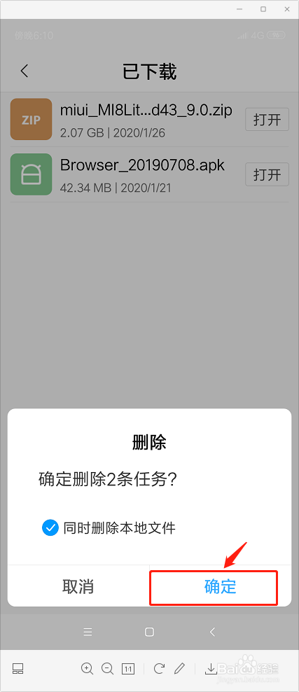 点击“确定”选项,即可删除小米手机系统更新安装包