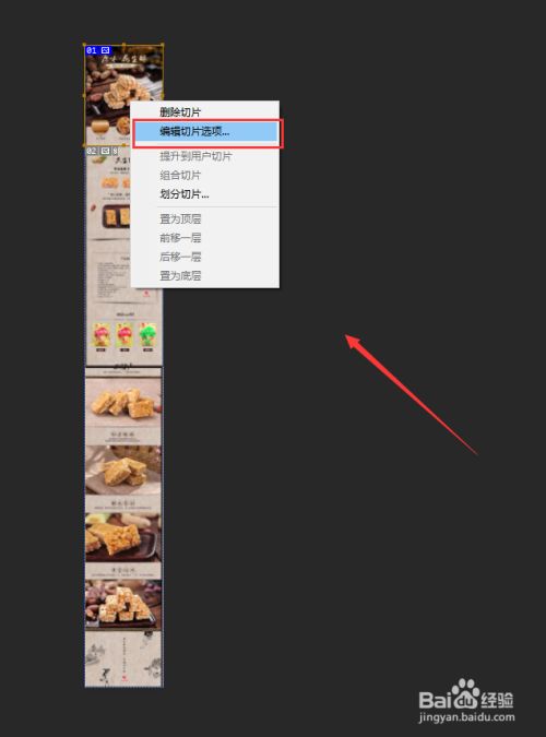 接着,用工具框选出尺寸,单击鼠标右键可以调出“编辑切片选项”。