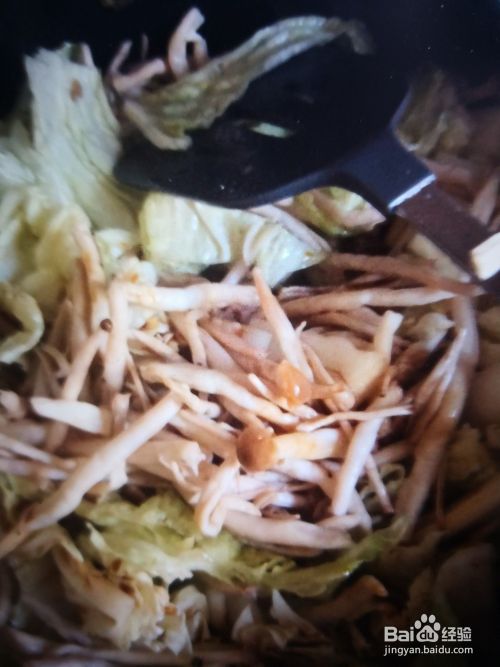 加入白菜蟹味菇,添加料酒十三香翻炒。